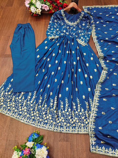 खूबसूरत पार्टी वेयर नायरा कट गाउन-पेंट दुपट्टा -
